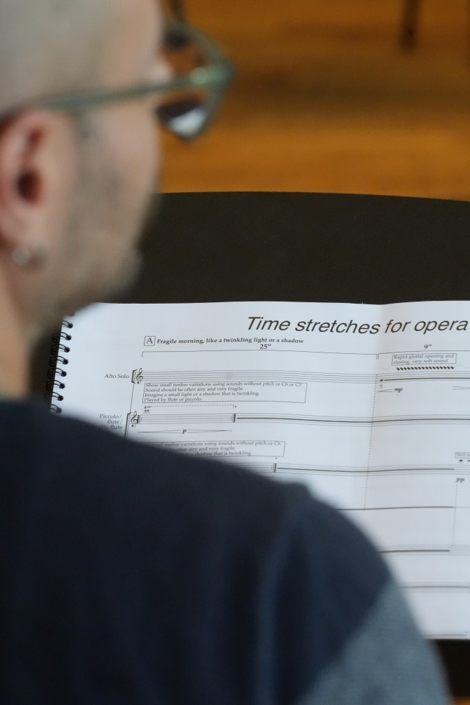 Unlike traditional opera—where the libretto is written first, followed by music and staging—The Dustborn grew out of an experimental, collaborative process. Rather than starting with a finished text, the team began with improvisations, gradually shaping both the musical and dramaturgical language together. The process continued throughout winter and spring, with evolving material shared publicly during Residentuu:r sessions at the Estonian Center for Contemporary Music.